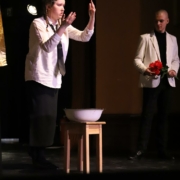 Dla przypomnienia – spektakl to opowieść o ludziach żyjących w świecie sztucznego udawania, w strachu przed odrzuceniem. Szukają ratunku u tajemniczego Geniusza, gdzie każdy odkrywa prawdę o sobie…